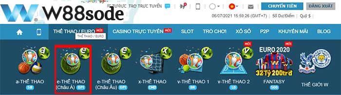 Người chơi lúc này sẽ lựa chọn sảnh chơi E-Thể Thao Châu Á. Đây là sảnh chơi thể thao mà người chơi Việt Nam nói riêng và Châu Á nói chung hay lựa chọn.